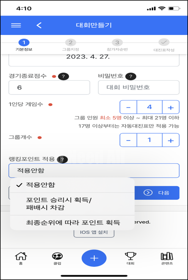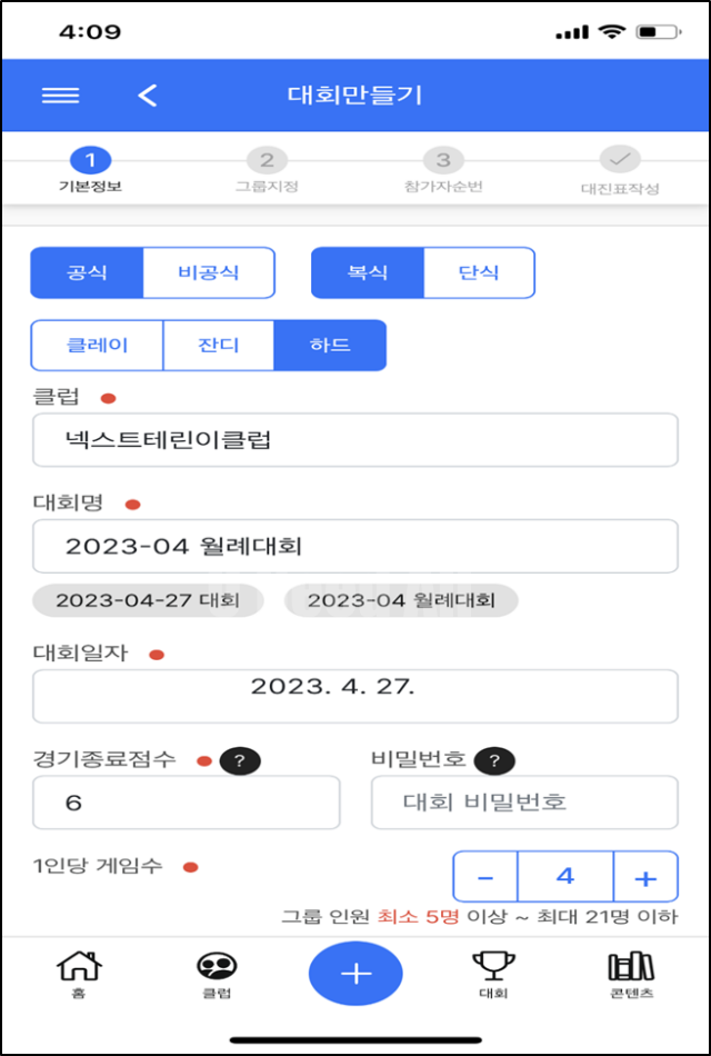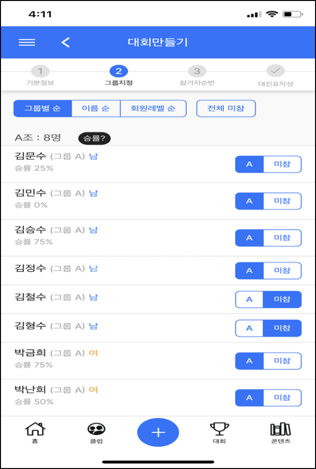 클럽내 대회 참석인원을 그룹별로 선택해주세요.