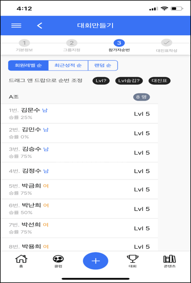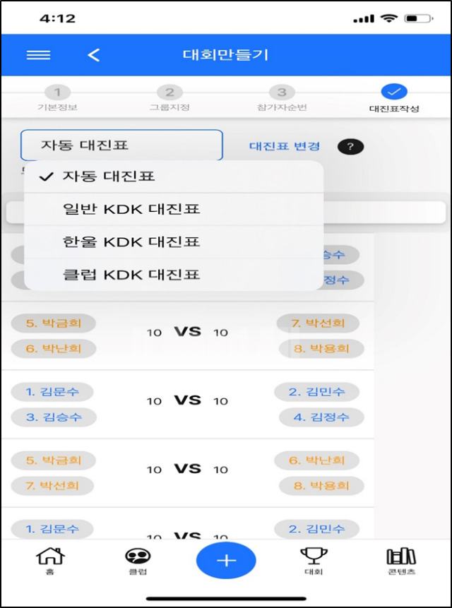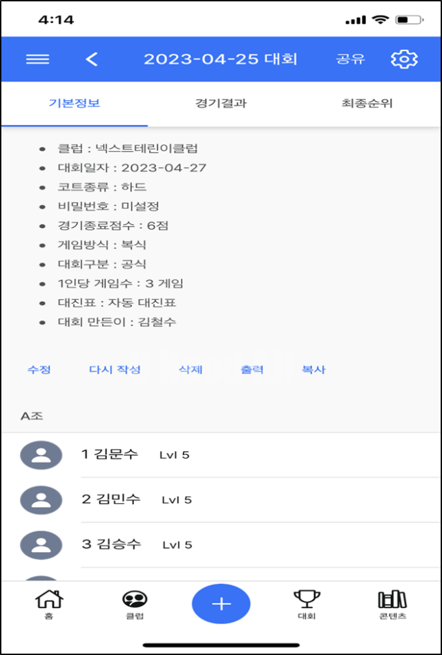 대진표 출력, 복사, 다시작성 등 다양한 기능이 있어요.