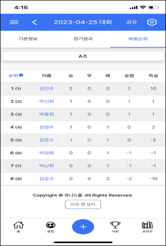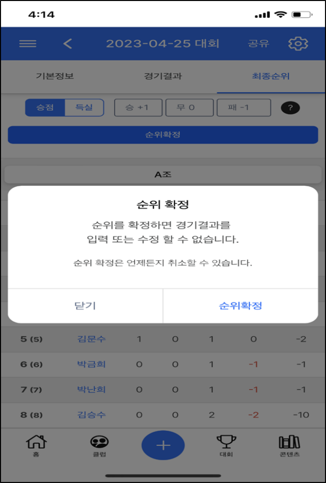 누적된 클럽회원 순위는 클럽-랭킹 메뉴에서 확인가능해요.